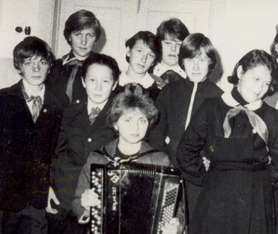 Нужно сказать, что основным инструментом в педучилище у меня было фортепьяно, ну а баян – дополнительный. Фортепьяно в школе было, но такое расстроенное… Работать на нём было нельзя и настроить возможности тоже не было. Зато был баян – новый! Его-то я и взялась осваивать и, надо сказать, вполне успешно. И в дальнейшей моей педагогической практике этот инструмент всегда был со мной. И сколько песен спето и детьми и взрослыми под его аккорды!