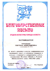 Самым важным в ее педагогическом труде я считаю, что она любит свою работу, старается научить детей тому, что знает сама. Не раз она была награждена грамотами и благодарностями школьного и городского уровней.