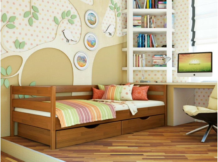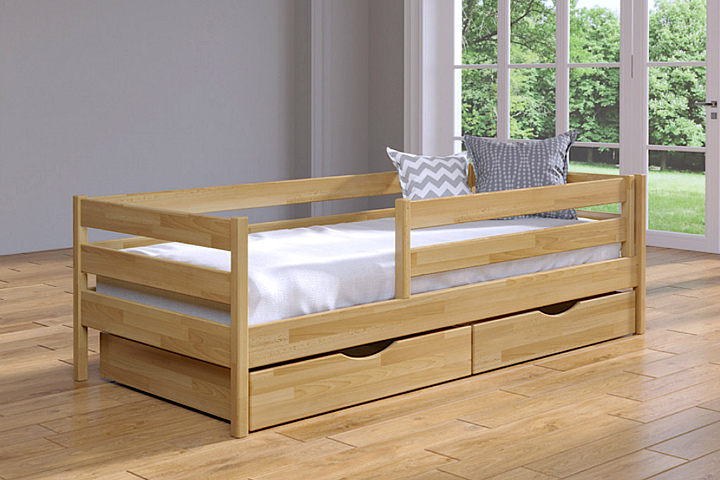 Качественная детская кровать может изготавливаться из массива дерева либо древесностружечных плит. Разумеется, первым вариант более предпочтителен по многим причинам: кровать из массива экологически чистая, безвредная и прослужит долго. Как правило, в производстве таких кроватей используются сосна, бук и береза.