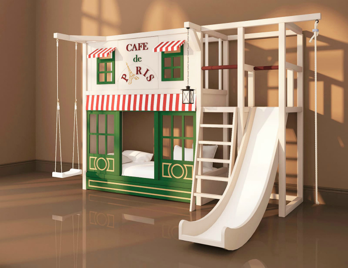 Нужно учитывать, что при индивидуальном заказе кроватку можно выбрать в разной комплектации, оснастив ее игровой зоной на любой вкус. Доступны игровые элементы, такие как: