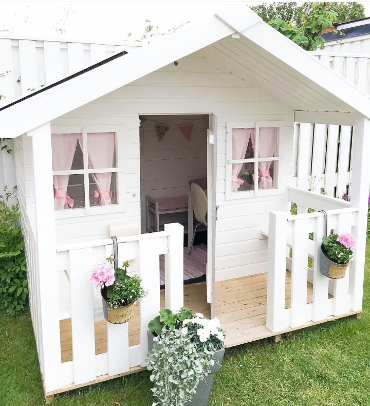 Технически домик готов, но дети обожают яркие цвета и сказочные миры, поэтому над экстерьером придется пофантазировать: в какие цвета покрасить, какими рисунками украсить фасад и так далее.