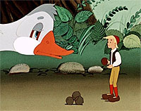 В оригинальной истории Нильс – угрюмый, жестокий и упрямый мальчишка. В пересказе мальчик, скорее озорник и хвастунишка, но добрый и смелый, а в мультфильме он вообще никогда не был плохим.