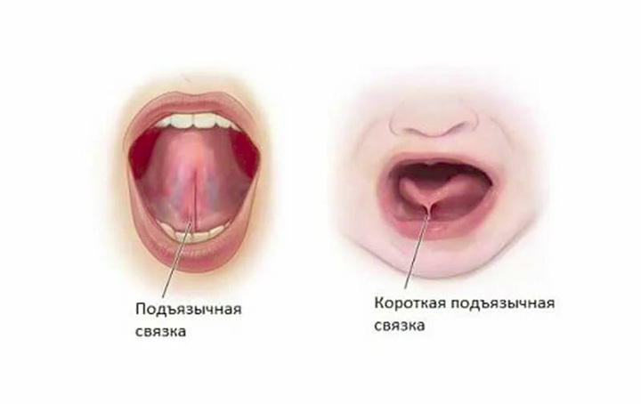 Короткая уздечка языка – ограничивает подвижность языка, затрудняя артикуляцию звуков «р», «л» и других.