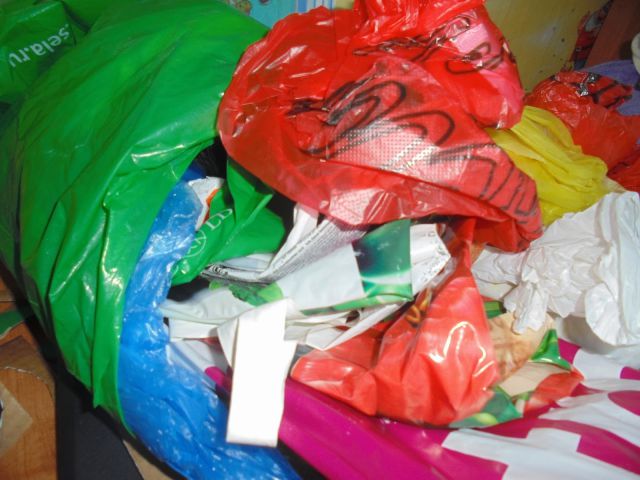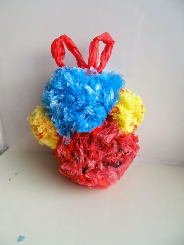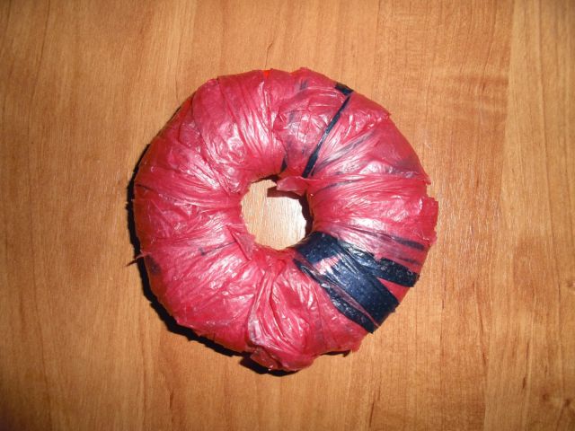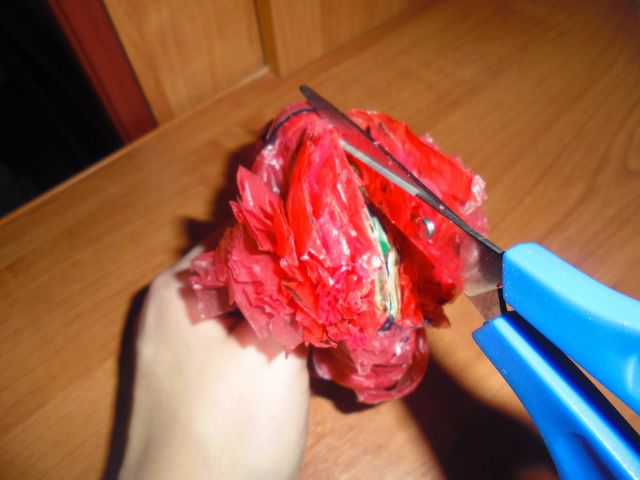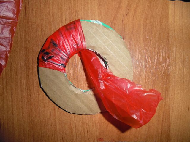 Я предлагаю Вашему вниманию развивающую игрушку из пакетов. Данная работа выполнена совместно с ребенком 2 лет. Казалось бы, что сможет ребенок в таком возрасте? Ан-нет! Во-первых, ребенку понравилось перебирать пакеты, раскладывать, разглаживать и подавать, с любопытством наблюдая за происходящим. Затем ребенок стал принимать более активное участие, наматывая пакеты на основу. Завершали работу тоже вместе, собирая детали воедино.