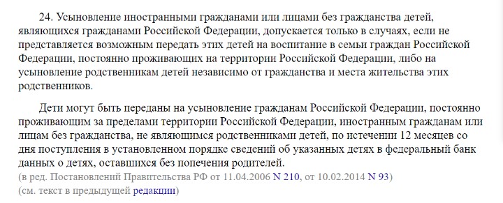 Также важно отметить, что усыновление детей из РФ запрещено: