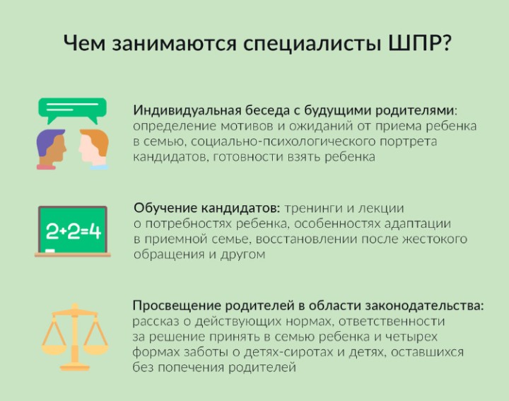 В школе приемных родителей обычно проводятся специальные обучающие программы, которые включают в себя курсы по психологии, педагогике, правовым аспектам приемного родительства, а также практические занятия и тренинги. Участники таких программ узнают об особенностях воспитания детей, которые пережили травмы или находятся в уязвимом положении, обучаются эмоциональной поддержке и развитию навыков взаимодействия с детьми.