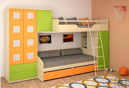 2) Только многофункциональная мебель. В детскую или подростковую комнату желательно выбирать многофункциональные предметы мебели – двухъярусные кровати, кровати чердаки. Такие модели подойдут особенно для малогабаритных помещений. В этом случае можно выбрать встроенные композиции, угловые изделия и мебель с множеством отсеков, полок, ящиков, которые, несомненно, понадобятся вашему ребенку для хранения каких-либо вещей.