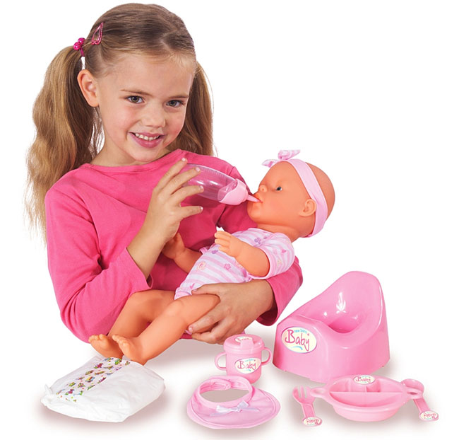 Для того, чтобы девочка училась ухаживать за маленьким ребенком, ей можно предоставить полный набор всех необходимых предметов и вещей.