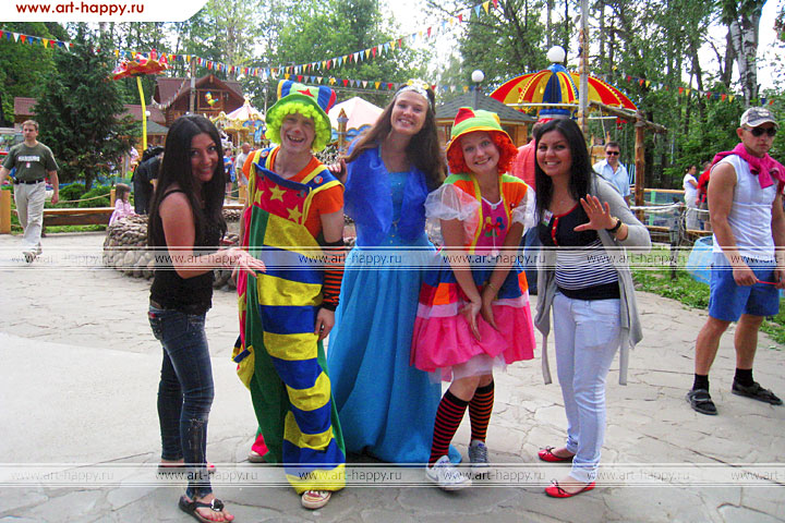 Некоторые родители сомневаются, можно ли пригласить аниматоров-клоунов или других сказочных героев, если торжество проходит на улице. Конечно, можно! В теплое время года, в ясную погоду, аниматоры с радостью проведут развлекательную программу с детьми на свежем воздухе.