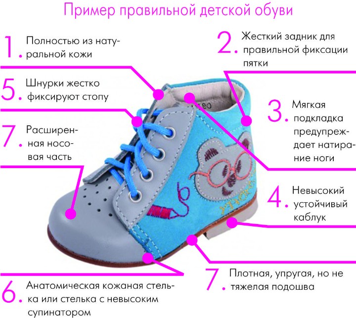 В этом возрасте важно обеспечить правильное формирование стопы. Обувь должна иметь: