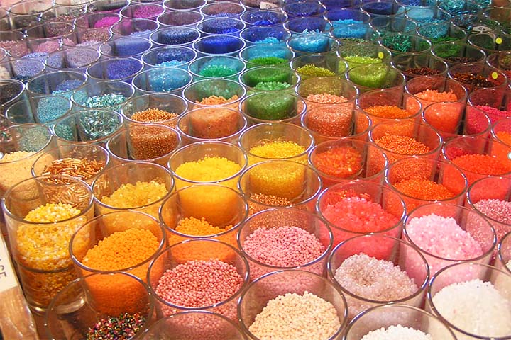 Купить бусины несложно в любых магазинах для рукоделия или бижутерии. Преимущественно они продаются в наборах с фурнитурой, замочками, подвесками, вставками.