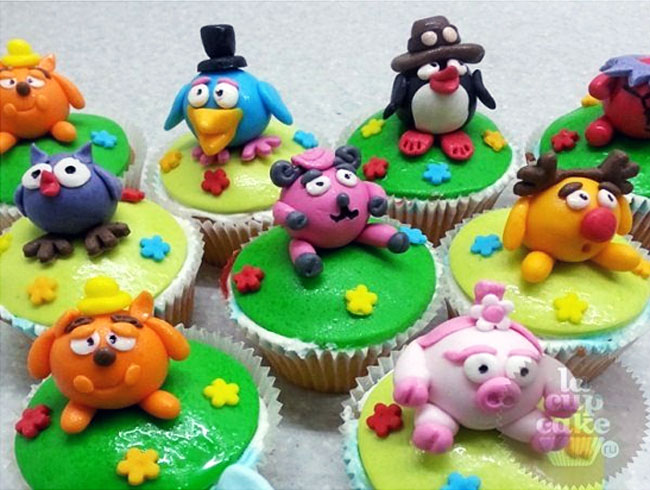 1. Выбор. Понравилось не столько то, что вариантов оформления мини-кексов несколько десятков, сколько то, что можно подобрать вариант оформления под увлечения ребенка. Внук обожает мультфильмы про смешариков, пересмотрел практически все серии. На странице http://lacupcake.ru/kapkejki/detskie/ мы выбрали три разновидности кексиков с изображением этих мультипликационных героев.
