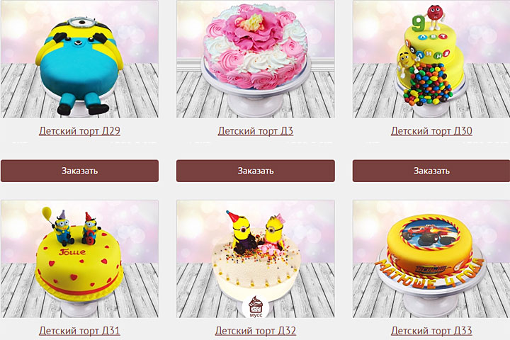 Зачастую на сайте производителя или в его магазине есть каталог с примерными моделями тортов, которые уже изготавливались и могут повториться. Торты на заказ для детей можно выбрать из представленного списка или же заказать абсолютно оригинальное оформление.