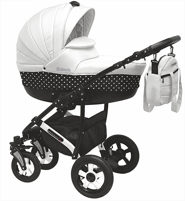 Кроме просторной люльки, польская модель имеет прогулочный блок для подросшего ребенка. За счет легкой алюминиевой базы коляска весит всего 12 кг, может компактно складываться для последующей переноски.