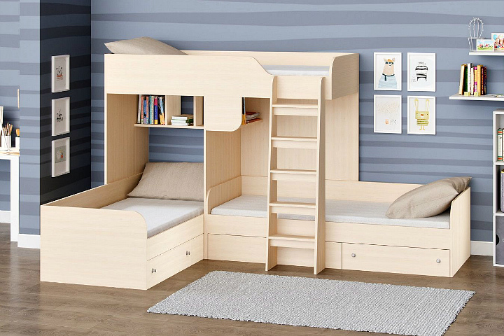Производители мебели выполняют кровати на заказ с учетом требуемых размеров, в том числе трех- и даже четырехспальные изделия. Дизайн и цветовая гамма мебели для мальчика и девочки различаются, как и основной набор составляющих (ящиков, тумб, полок для книг и игровых элементов) для ребенка-дошкольника и подростка.