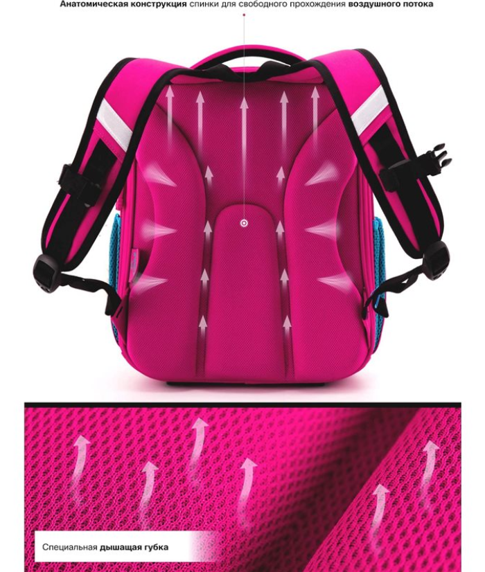 Светоотражающие элементы. Для того, чтобы водители транспорта могли увидеть ребенка в темное время суток, на рюкзаке обязательно должны быть светоотражающие элементы на лямках, передней части, боковинах. Это может быть окантовка, ленты, аппликации из специального материала. В некоторых моделях используются светоотражающие клапаны.
