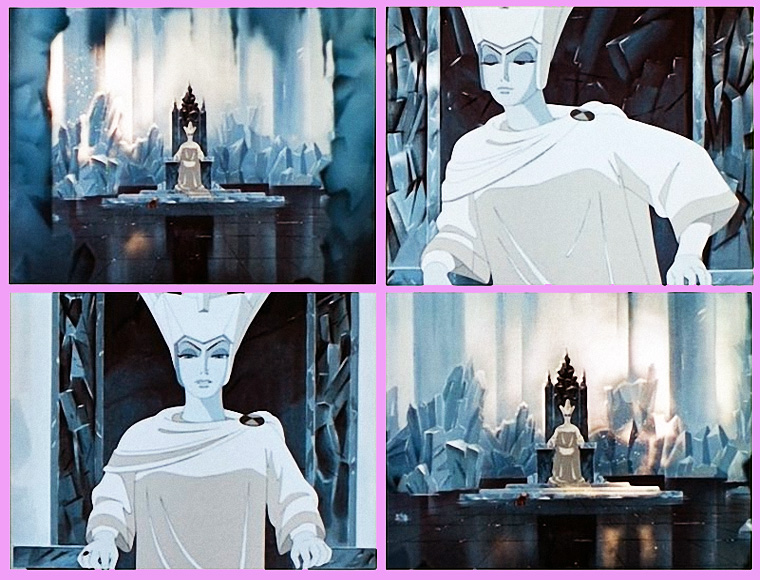 Воспитатель: Чтобы Снежная королева увидела ваши рисунки, повесьте их на доску. (Дети вешают на доску рисунки). Теперь закрывайте глаза, а я прочитаю волшебное заклинание: «Сказка, сказка отзовись, поскорее к нам явись».