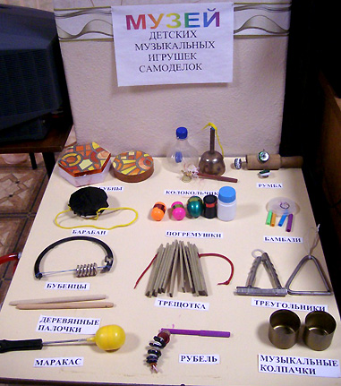 На фото: Музей детских музыкальных игрушек самоделок находится в музыкальном зале в доступном для детей месте.