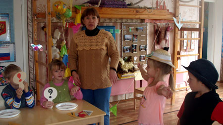 Воспитатель: Вы убедились в том, что артистом стать нелегко, для этого надо изменять голос, говорить с выражением, менять выражение лица, производить какие-либо жесты руками. Этому всему надо долго учиться. Мы сейчас будем учиться некоторым моментам, которые необходимы артисту.