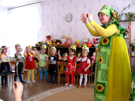 Воспитатель: Пчелке очень понравились детки, они послушные, Пчелка уверена, что детки не убегают, как Колобок от взрослых, и она дарит им цветочки со сладким нектаром!