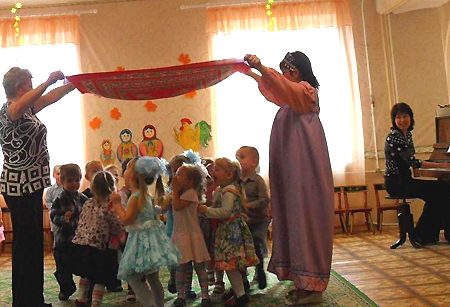 В детском саду стало традицией проводить праздники «Масленица», «Пасха», «Троица». Календарные праздники – это не только своеобразный итог проведенной работы с детьми по усвоению фольклорного материала, но и мощный фактор положительного воздействия на эмоциональную сферу ребенка. Фольклорные праздники – возможность для детей проявить свои творческие способности в любом виде деятельности по своему выбору и на любом уровне, без излишних физических и психологических нагрузок. Они проходят интересно и радостно, с использованием разнообразных игр. Приведу пример.