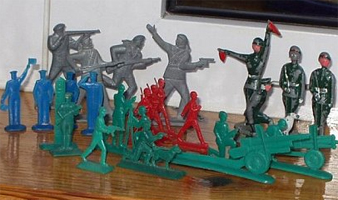 Особое мнение высказывалось и об игрушках военной направленности (детские пушки, пистолеты, сабли и т.д.). Такие игрушки, по мнению педагогов, оказывают сильное влияние на формирование личности, эмоциональную и нравственную сферу детей. В роли военного или разбойника ребенок идентифицирует себя с героем, приписывает себе его характеристики, что может не всегда хорошо может отразиться на детской психике. К положительным свойствам и характеристикам военных игрушек относили их направленность на развитие моторики, двигательную активность.