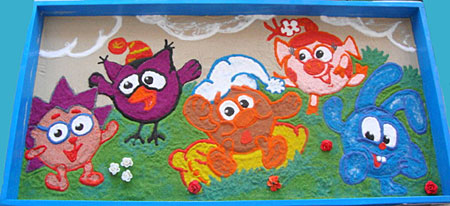 Песочный спектакль от обычного отличается тем, что дети выступают в нем не только актерами, но и создателями сказки на песке. Все свои действия они сопровождают построением в песочнице сюжета сказки. На первом этапе рекомендуется проводить театрализованные занятия в песочнице, используя хорошо знакомые детям сказки "Курочка ряба", "Репка", "Теремок", "Колобок". Далее - авторские и адаптированные сказки, соответствующие программным требованиям и возрастным особенностям детей.