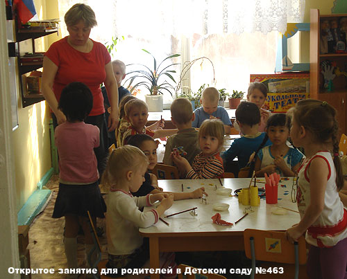 Проводится как экскурсия по дошкольному учреждению с посещением группы, где воспитываются дети пришедших родителей. Можно показать фрагмент работы дошкольного учреждения (коллективный труд детей, сборы на прогулку и др.). После экскурсии и просмотра заведующая или методист беседуют с родителями, выясняют их впечатления, отвечают на возникшие вопросы. На это мероприятие приглашаются не только те родители, дети которых пойдут в детский сад, но и родители воспитанников этого ДОУ.