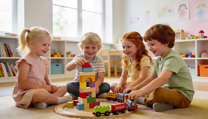 Общение в коллективе. Дети учатся договариваться, сотрудничать, играть и решать возникающие конфликты. В детском саду ребёнок осваивает нормы поведения, учится уважать мнение других и выстраивать положительные отношения. Это помогает обрести уверенность в общении со сверстниками и готовит к взаимодействию с одноклассниками в школе.