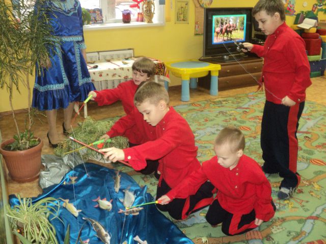 – Да, да, дети, казаки очень любили и любят ловить рыбу, недаром они жили и живут на берегах таких великих рек как Волга и Дон. Кто из вас ловил рыбу? Чем ловили? Где? А какую рыбу? Кто знает, как называется рыба? Предлагаю отправиться на рыбалку. Берем снасть и идем на реку.