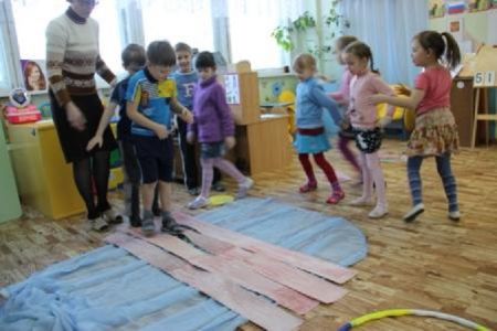 Дети, мы с вами добрались до болота. Чтобы его перейти , нужно суметь продержаться всем вместе на одной кочке, считая от 0 до 10, а иначе мы все утонем в болоте.