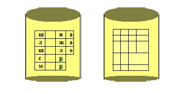 Ребята, вам надо выловить каждому по очереди из колодца с помощью этих ведер по одной букве и вернуть беглецов на свои места в словах, вписав их в свободные клеточки.