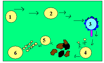 Воспитатель: Ребята, чтобы добраться до цифры 5, надо разобрать завал из камней, на которых написаны слоги. Но завал сможем разобрать лишь тогда, когда из слогов составим слова. Камни коричневого цвета для одной команды, камни черного цвета для другой команды.