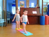 В группе детей 2-3 лет организована работа по предупреждению плоскостопия и развитию мелкой моторики рук. Хождение босиком по ребристой доске, по массажным коврикам обеспечивает правильное формирование стопы ребенка. Перебирание пуговиц, фасоли, гороха, выкладывание мозаики, пальчиковые игры – все это ведет к развитию мелкой моторики, логическому мышлению, вниманию.