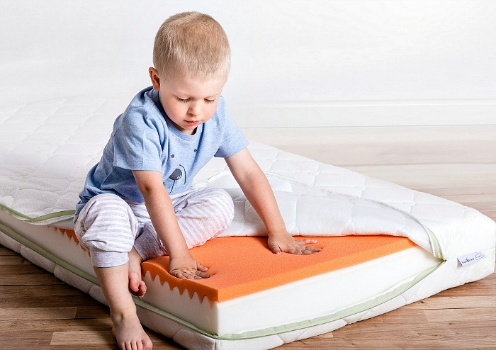 Новорожденным и детям возрастом до 3 лет рекомендованы беспружинные матрасы с наполнением из природного и экологичного материала – койры кокоса. Такие модели обладают высоким уровнем жесткости, что очень важно для стабильного формирования позвоночного столба.