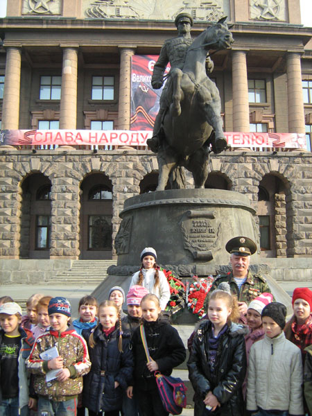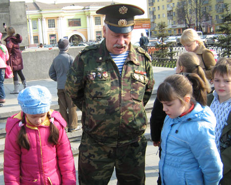 Накануне 65-летия праздника Победы наш класс запланировал экскурсию по местам боевой славы. Экскурсовод Пескарёв Михаил Иванович, ветеран вооружённых сил ВДВ, встретил детей в военной форме. Он рассказывал им о защитниках нашей страны и боевых действиях.