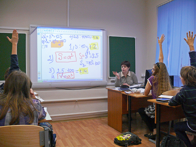Используя интерактивные доски, докладчики имеют возможность не работать с огромным объемом «физических» материалов (таблиц, схем, распечатанных на бумаге). Информация в полном количестве имеется в ноутбуке. Она выводится на панель проектором.