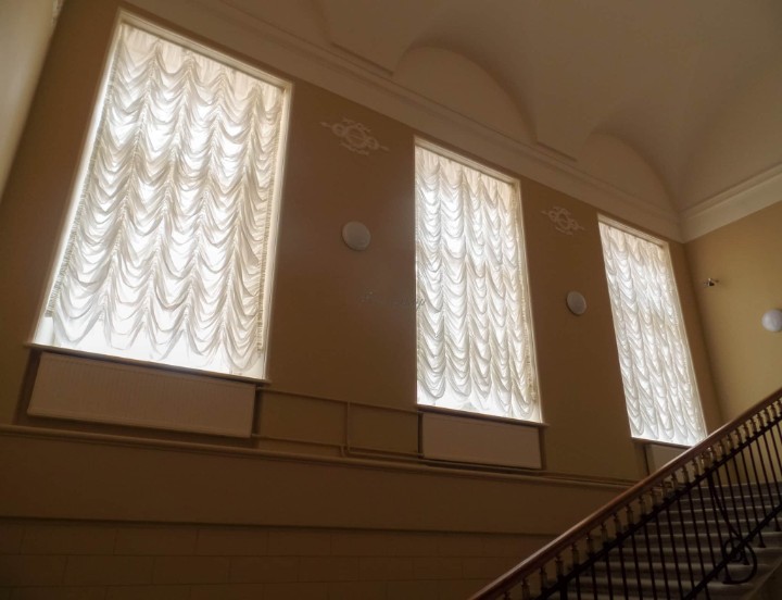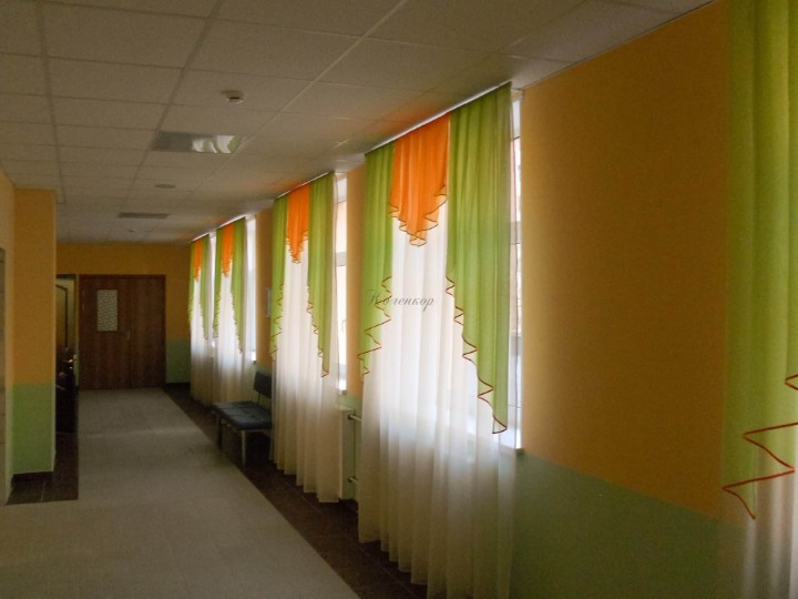 Существуют варианты дизайна штор, подходящие для различных помещений: классов, кабинетов директора и других сотрудников, актового зала и т.д. Они отличаются по исполнению: например, в актовом зале, где регулярно проводятся торжественные мероприятия, и стиль должен быть соответствующим. Для этого используются многослойные конструкции, необычные формы и часто – сочетания разных оттенков.