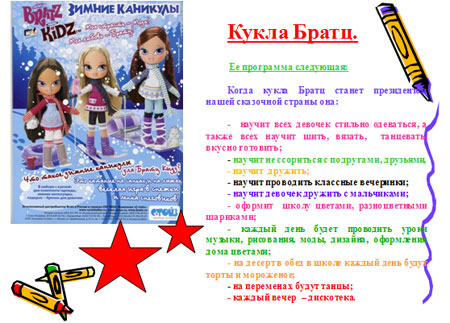 После подсчёта голосов победила кукла Братц. И вся жизнь в сказочной стране на год была определена.