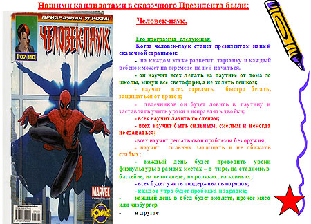 Кандидатами в президенты сказочной страны были: Человек-паук