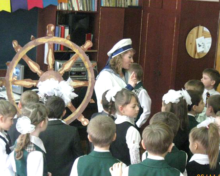 Занятие проводится в форме «морского путешествия». В качестве оформления могут использоваться атрибуты корабля: флажки, штурвал, изображения моря, корабельных снастей и т.д.