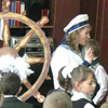 Занятие проводится в форме «морского путешествия». В качестве оформления могут использоваться атрибуты корабля: флажки, штурвал, изображения моря, корабельных снастей и т.д.