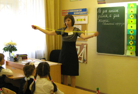 – Итак, я с вами согласна, что лучше наклеить готовый бумажный метр, т.к. не будет погрешностей в точном определении роста, что очень важно.