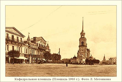 За собором, там, где ныне возвышается памятник В. И. Ленину, прежде стоял памятник императору Александру II, прозванному в народе освободителем за то, что 19 февраля 1861 году он отменил крепостное право в России. Двадцать лет спустя он погиб от рук революционеров.