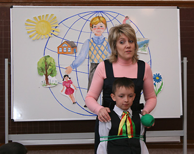 (Учитель опутывает нитями из клубка выбранного ученика. Потом спрашивает, как он себя чувствует и какие чувства при этом возникали у одноклассников.)