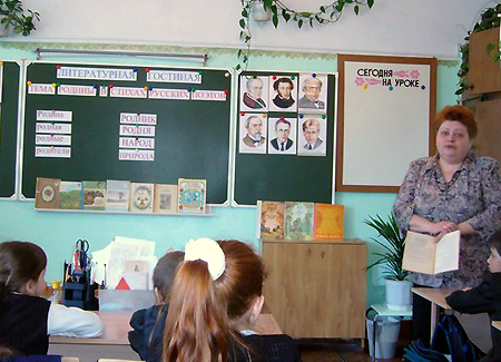 Учитель: «О светло светлая и украсно украшена земля русская. И многими красотами удивлена еси, реками и кладязьми месточестными, горами крутыми, холми высокими, дубравами чистыми, польми дивными, зверьми различными, птицами бесчисленными, городы великими, селы дивными… Всего еси исполнена земля русская…» Это строки из древней летописи.