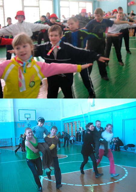 В нашей школе уже четыре года проводится общешкольная акция «Будь здоров!» Нравится она и малышам, и учащимся старших классов. Школа у нас маленькая, чуть более 100 человек, поэтому участвуют в эстафетах больше половины учащихся, остальные помогают учителю с подготовкой инвентаря или «болеют» за свою команду.