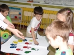 Давайте на память о сегодняшней встрече мы, ребята, создадим свою футболку дружбы. Вот на такой футболке, пусть оставит каждый из вас отпечаток своей ладошки по кругу.