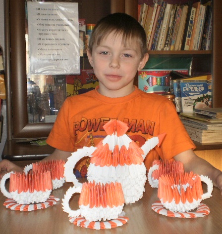 Интересный творческий проект, грамотно оформлен. Чайный сервиз получился великолепный! Модульным оригами сама некоторое время увлекалась. Работа требует огромного терпения.