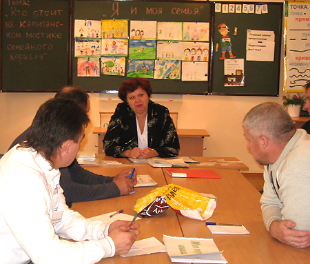 Одно из основных направлений педагогической деятельности Алевтины Евгеньевны – это работа с родителями. По ее мнению, в современной семье папа отстранен от дел обучения и воспитания собственного ребенка, поэтому с целью осмысления роли отца и мужа в семье, она проводит собрание для пап в 1 классе. Фото автора Муза